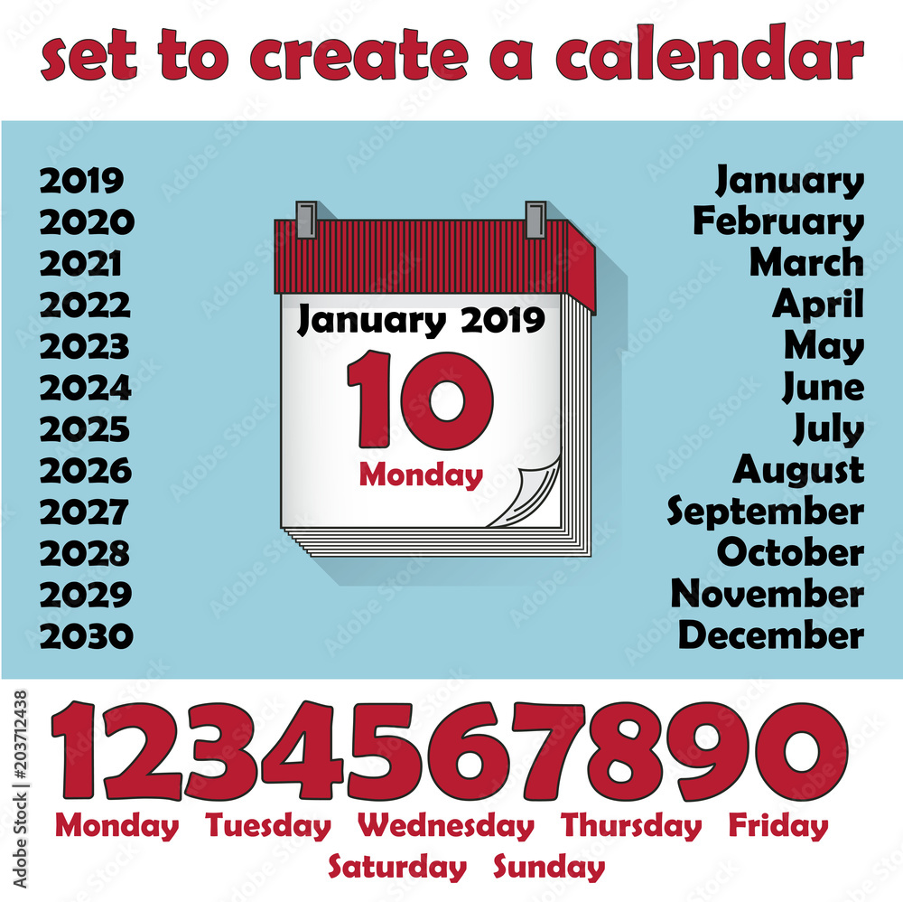 Source : stock.adobe.comCalendar for 2024, 2025, 2026, 2027, 2028, 2029, 2030, 2031, and